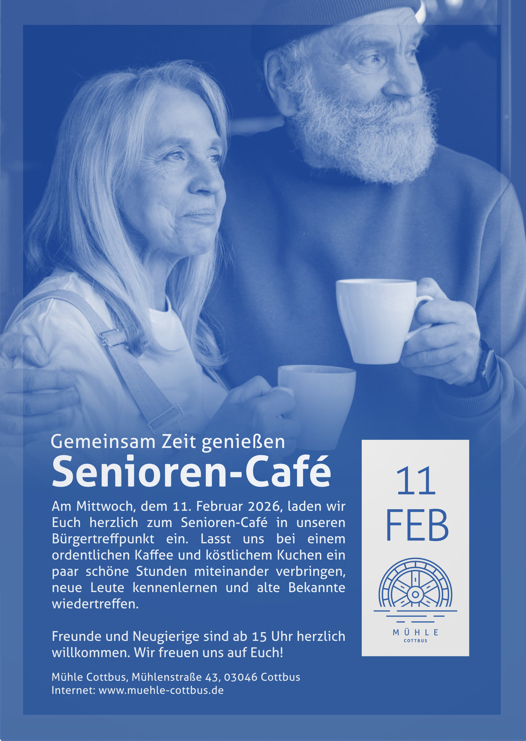 Am Mittwoch, dem 11. Februar 2026, laden wir Euch herzlich zum Senioren-Café in unseren Bürgertreffpunkt ein. Lasst uns bei einem ordentlichen Kaffee und köstlichem Kuchen ein paar schöne Stunden miteinander verbringen, neue Leute kennenlernen und alte Bekannte wiedertreffen.